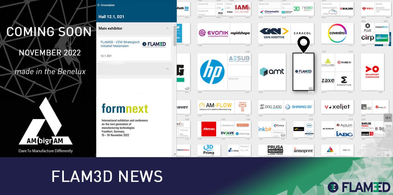 Flam3D is ook dit jaar aanwezig op Formnext op een groepsstand van 144m² en met 13 co-exhibitors. Daarmee is Flam3D de stand met het grootste aantal co-exhibitors van de beurs. Naast deze sterke vertegenwoordiging, lanceren we er ook een heel speciaal project.