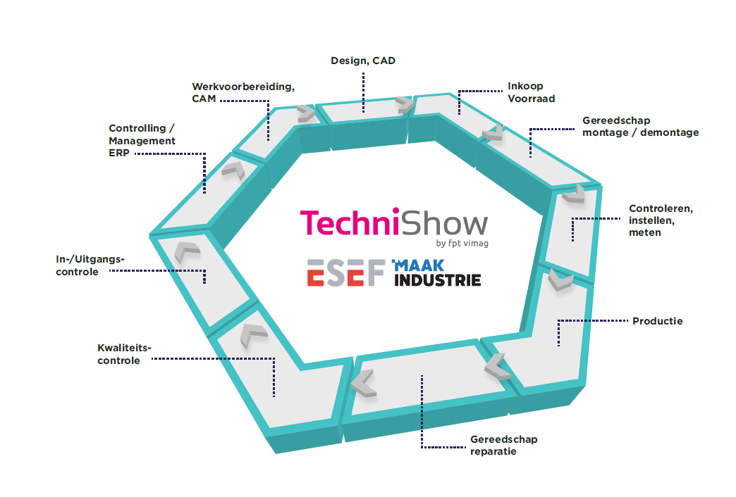 Op TechniShow 2026 in de Utrechtse Jaarbeurs komen drie themapleinen die de nieuwste ontwikkelingen en trends in de maakindustrie belichten. Daarnaast wordt de segmentindeling van TechniShow en ESEF Maakindustrie 2026 aangepast. In plaats van de traditionele halindeling introduceren ze een heldere, ketengerichte opzet. Deze nieuwe indeling weerspiegelt hoe bedrijven tegenwoordig samenwerken: als een geïntegreerde productieketen.