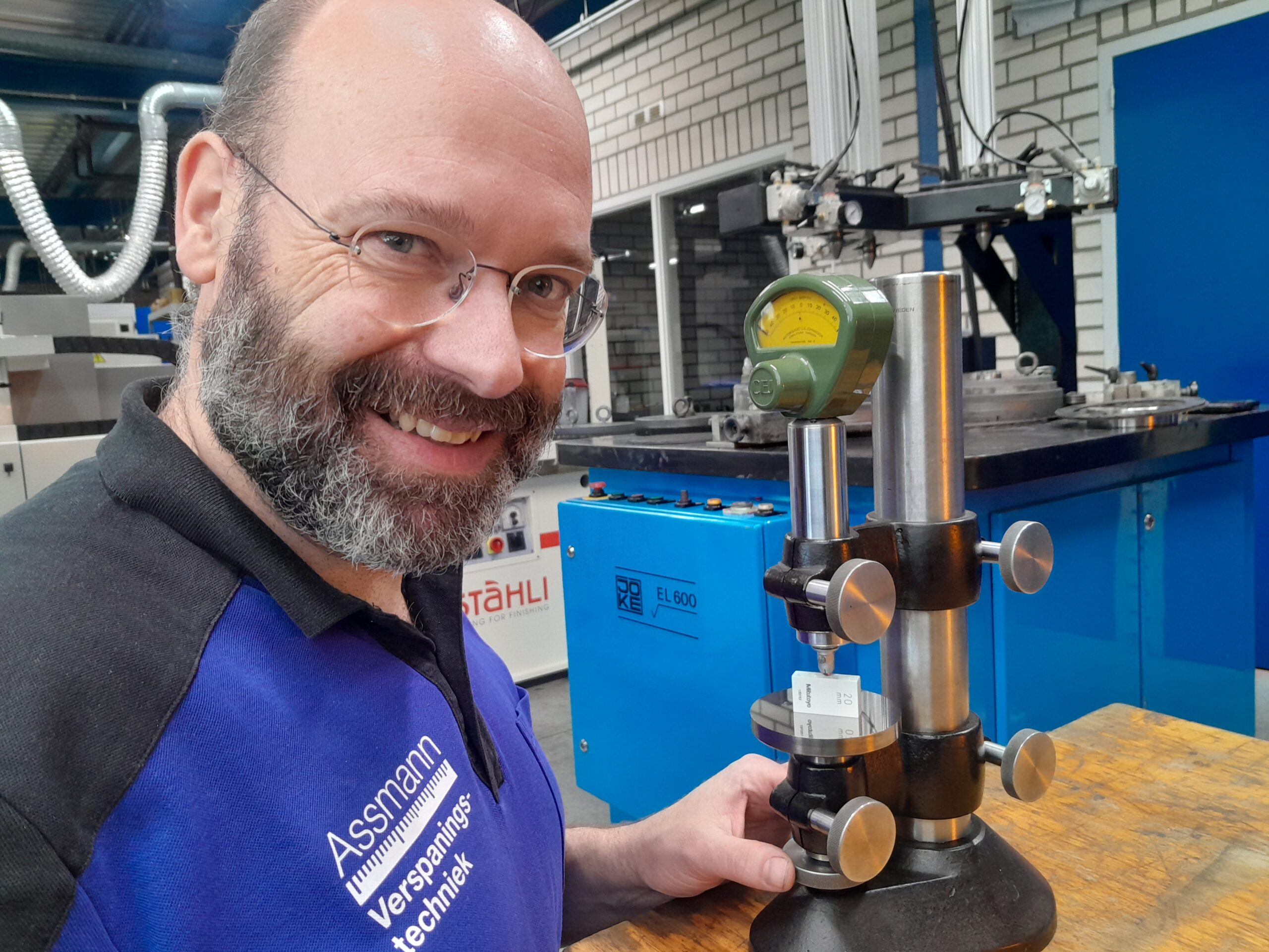 In 25 jaar zijn er natuurlijk veel klussen voorbij gekomen. Enkele bijzondere: vier kabelschoentjes van EUR 10.000,- per stuk voor een universiteit. Enkele matrijzen voor suikerklontjes. Maar de meest bijzondere klus is waarschijnlijk deze: een beschadigd onderdeel redden door er maximaal 300 nanometer vanaf te leppen. Uitdaging – naast het leppen zelf – was het meten. Nobby gebruikte hiervoor een klassieke mikrokator meetklok van C.E. Johansson. Elk streepje: 100 nanometer. Door de klok goed af te lezen, kun je ook stappen van 20 à 25 nanometer inschatten. Door heel langzaam te leppen en regelmatig te meten, wist Nobby precies 300 nanometer (0,3 micron) van het dure, hardmetalen onderdeel te verwijderen.