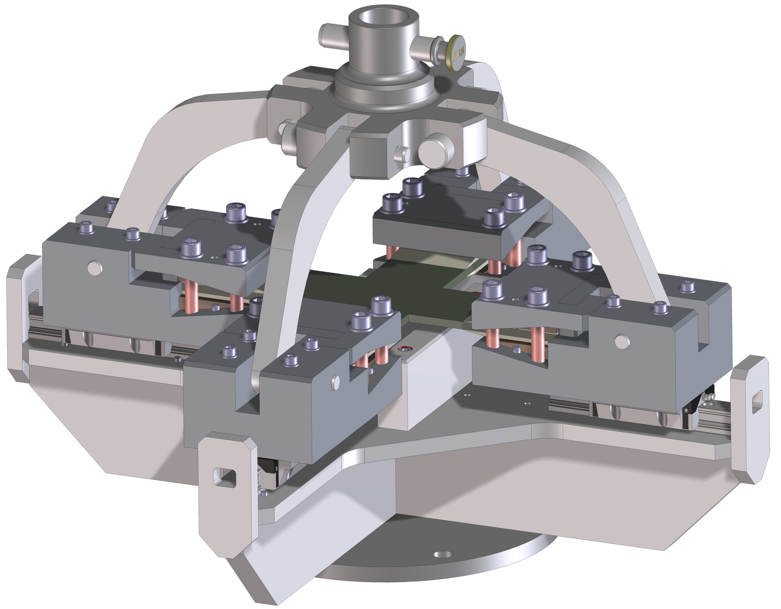 Het composietmateriaal is sterk en stijf, waardoor het kwetsbaar is bij puntbelastingen. Vandaar dat het specimen niet met buigende krachten belast mag worden. Ook moet het klemsysteem zorgen voor een gelijkmatige inklemming. De Tooling is opgebouwd uit vier productklemmen, elk op een eigen slede geplaatst. De klemmen worden via scharnierende levers aan elkaar verbonden aan een centraal drukpunt. Als de trekbank een last aanbrengt op het centrale drukpunt, worden alle productklemmen gelijktijdig met dezelfde kracht uit elkaar gedrukt via de levers. Hiermee wordt gelijktijdig aan vier zijden aan het specimen getrokken. Belangrijk hierbij is wel dat de kracht op het specimen oploopt, als met dezelfde kracht de hoek van de levers verkleind. Dit wordt in de besturing van de trekbank gecorrigeerd.
