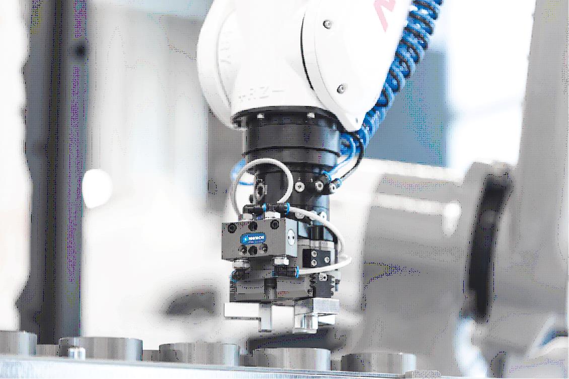 De verdere integratie van robot-automatisering is ook doorgedrongen bij bedrijven die aanvankelijk geen eigen robot op de markt brachten. Hoffmann Group Group levert vanaf mei een eigen robot. Peter Jansen is aangenomen als automation specialist bij Hoffmann Group, om robot-automatisering aan de man te brengen. Het gaat om de Automation Basic-beladingsrobot. “We zitten dagelijks bij klanten en merkten dat daar de vraag naar verdere robot-automatisering toenam. Veel bedrijven hebben een CNC-machine, draaibank, freesbank of bewerkingscentrum staan en daar kunnen we een tafelmodel handling-robot aan plaatsen. Speciaal gericht op machines die al in gebruik zijn bij klanten en die mogelijk nog niet voorbereid zijn voor automatisering.” Een nieuwe 3- of 5-assige machine krijgt vandaag de dag al vaak vanaf de fabrikant de mogelijkheid van automatisering met een robot meegeleverd. Machines die al in gebruik zijn hebben dat vaak nog niet. Juist daar mikt Hoffmann Group op. “Ons systeem is eenvoudig en is zonder ingrijpen in de besturing te gebruiken. Eigenlijk zijn er maar zes signalen nodig om alles aan te sluiten: spanmiddel open/dicht, deur open/dicht en machine start/stop. Dat zijn signalen die we van een machine kunnen aftakken. We hebben geen plc of besturing nodig.” Het verschil tussen Hoffmann Group en andere leveranciers van robot-automatisering is de diversiteit van het bedrijf. “We hebben nu elf bereiken waaruit we de tools kunnen leveren; alles onder een dak. Als we bij een automatiseringstraject zien dat het opspannen of verspanen niet goed loopt, kunnen we er met onze specialisten het proces optimaliseren.” Het is nog een paar maanden wachten voor de Nederlandse markt, maar in Duitsland en Italie zijn nu ongeveer veertig systemen in gebruik. In Nederland zit Hoffmann Group in de fase dat er trainingen aan de eigen mensen worden gegeven. Zodra dit gereed is, wordt Nederland het derde land waar Hoffmann Group een Garant Basic-robot gaat leveren. “We zullen ons eigen systeem op korte termijn in Borne plaatsen. Over twee tot drie maanden kunnen we echt volop de markt op. Automatisering leveren is niet nieuw voor ons, maar wel anders. Het is meer een project in plaats van een product.”