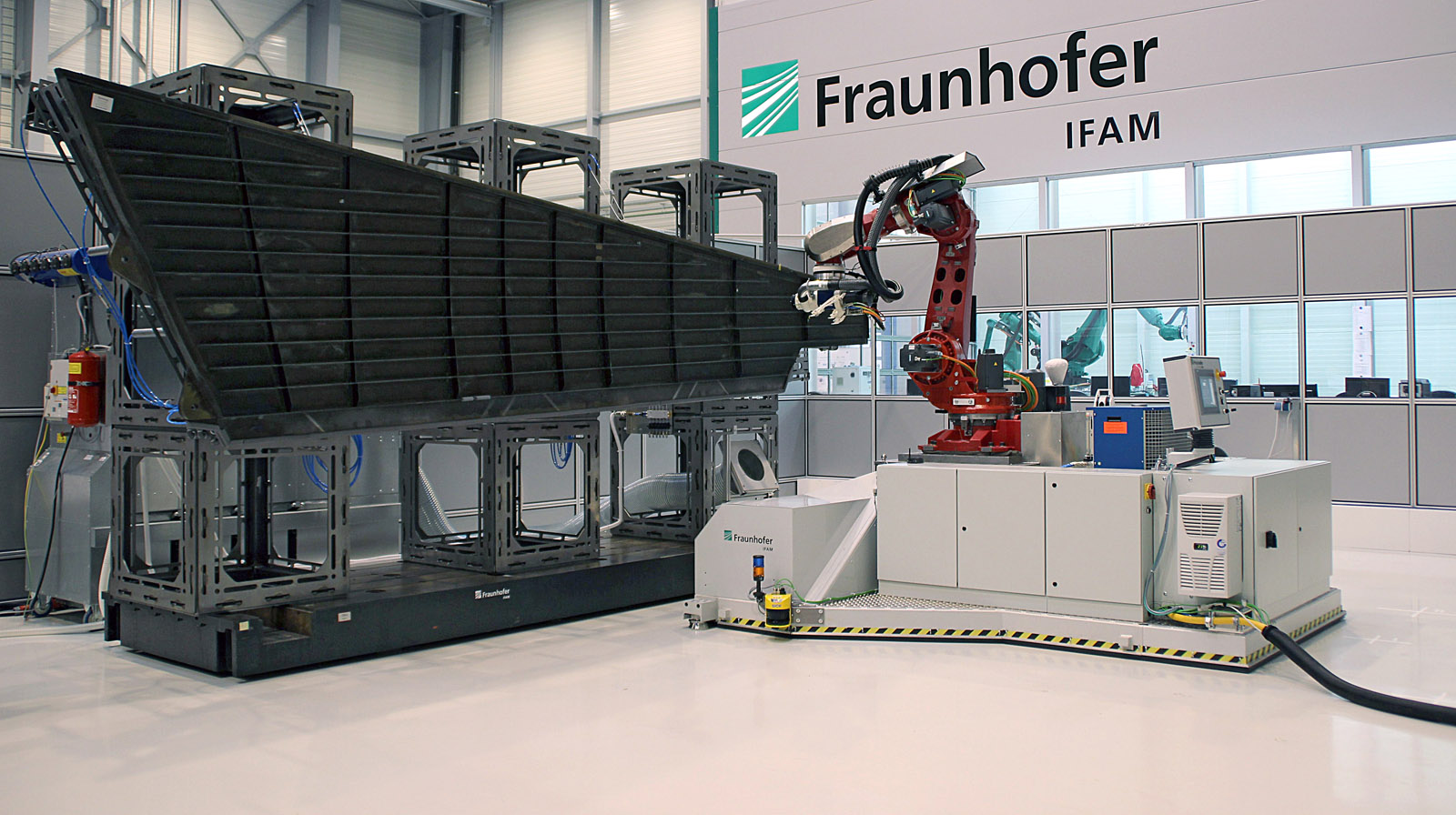 Geautomatiseerde systemen die tegenwoordig worden gebruikt in de vliegtuigbouw zijn vaak zware, op maat gemaakte portaalsystemen die langzaam over rails bewegen. Deze systemen zijn duur, niet flexibel, hebben hoge niet-productieve tijden en daarom een lage productiviteit. De robot die Fraunhofer in samenwerking met partners heeft ontwikkeld kan zelfstandig naar werkstukken rijden en daar werkzaamheden zoals meten, lijmen, boren en frezen uitvoeren. De robot kan universeel worden gebruikt en kan snel en flexibel worden aangepast aan vormafwijkingen, product- en typeveranderingen. Terwijl eerder ontwikkelde robots in dergelijke taken niet voldeden aan de hoge eisen van de luchtvaart op het gebied van nauwkeurigheid, is dit geen probleem voor de nieuwe robot: de bewerkingsafwijkingen bedragen minder dan een halve millimeter.