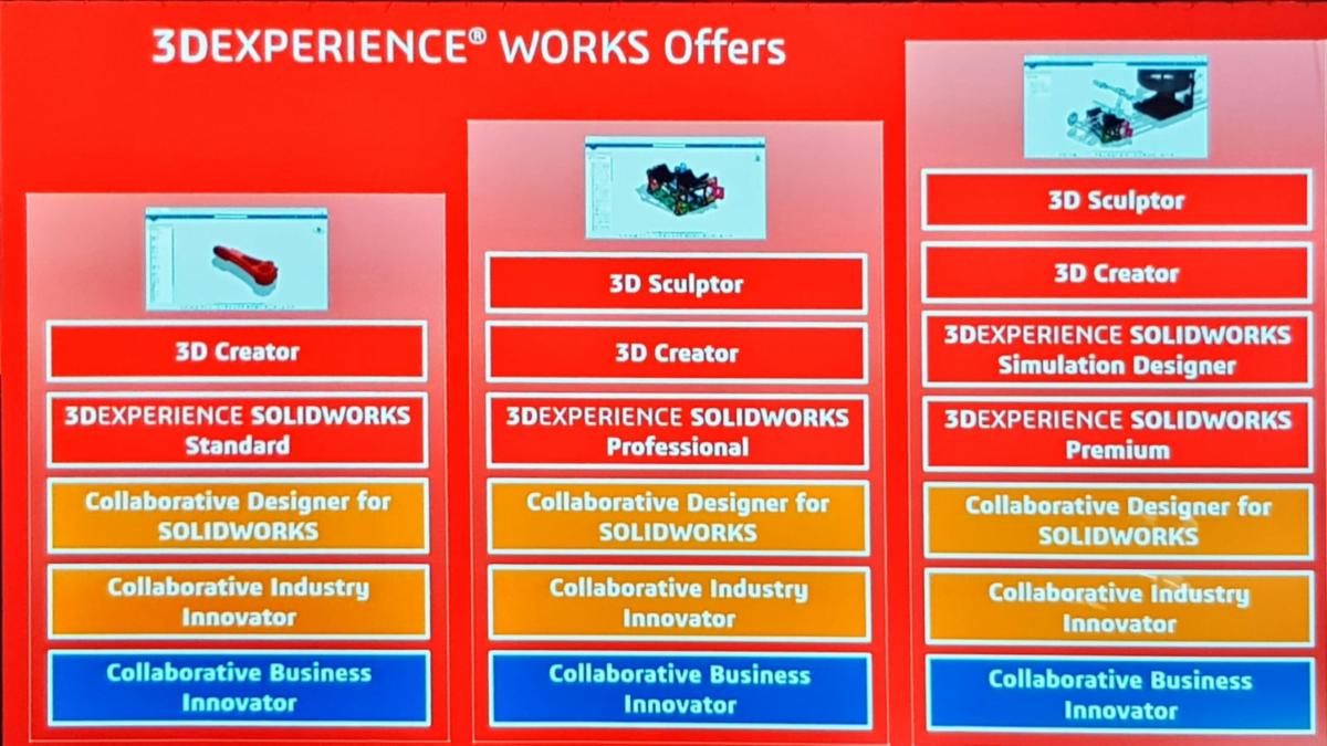 Dassault Systèmes vult deze behoeften in met 3DExperience Works Standard, Professional en Premium. “Met deze nieuwe commerciële aanbiedingen hebben SolidWorks-gebruikers toegang tot de krachtige desktoptoepassingen die ze kennen en waarop ze vertrouwen, maar met de toegevoegde waarde van het 3DExperience-platform. Dit platform verbindt alles en iedereen die betrokken is bij het concept, het ontwerp, de simulatie, de productie, de verkoop en de serviceprocessen. Hierdoor blijft tijd over om na te denken, te creëren en dingen gedaan te krijgen.”