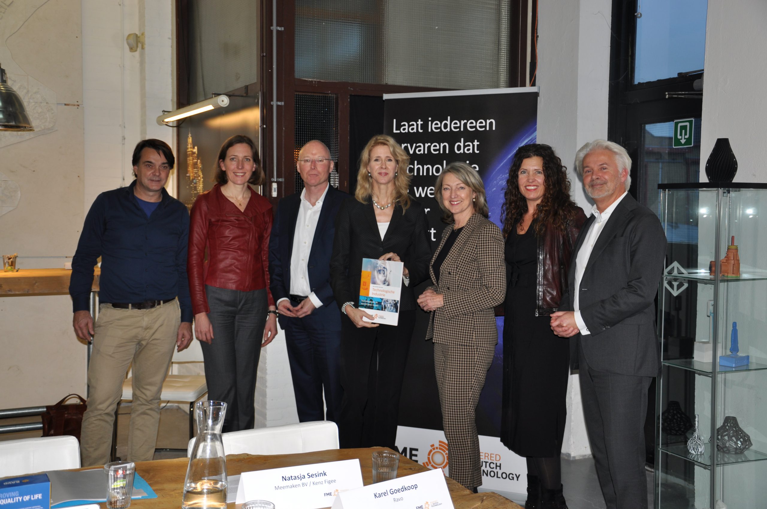 Op de foto van links naar rechts: Herman van Bolhuis (Directeur 3D Makers Zone), Stephanie Veltkamp (Directeur Jeveka), Robert Nefkens (Algemeen Directeur Hembrug), Mona Keijzer (Staatssecretaris van Economische Zaken en Klimaat), Ineke Dezentjé Hamming-Bluemink (Voorzitter FME), Natasja Sesink (Operational Partner MeeMaken en Directeur Kenz Figee), Karel Goedkoop (Algemeen Directeur Ravo).