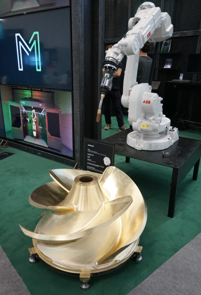 MX3D, de Nederlandse aanbieder van WAAM-technologie, laat nog een heel andere reden zien om te gaan 3D printen. Het Amsterdamse bedrijf heeft een schroef voor een waterpomp van Engie geprint met een speciale koperlegering. Het printproces met de ABB-robot heeft 7 dagen geduurd, 24/7, echte printtijd. Binnenkort wordt het onderdeel gecertificeerd door Bureau Veritas, begin 2023 wil Engie het inbouwen in een bestaande installatie. Deze draait al sinds de jaren vijftig. En daar zit de reden waarom Engie naar MX3D is gekomen: Er bestaan geen tekeningen meer van het huidige onderdeel, een gietstuk. Met reverse engineering heeft MX3D het product gedigitaliseerd en daarna met de M1 geprint.