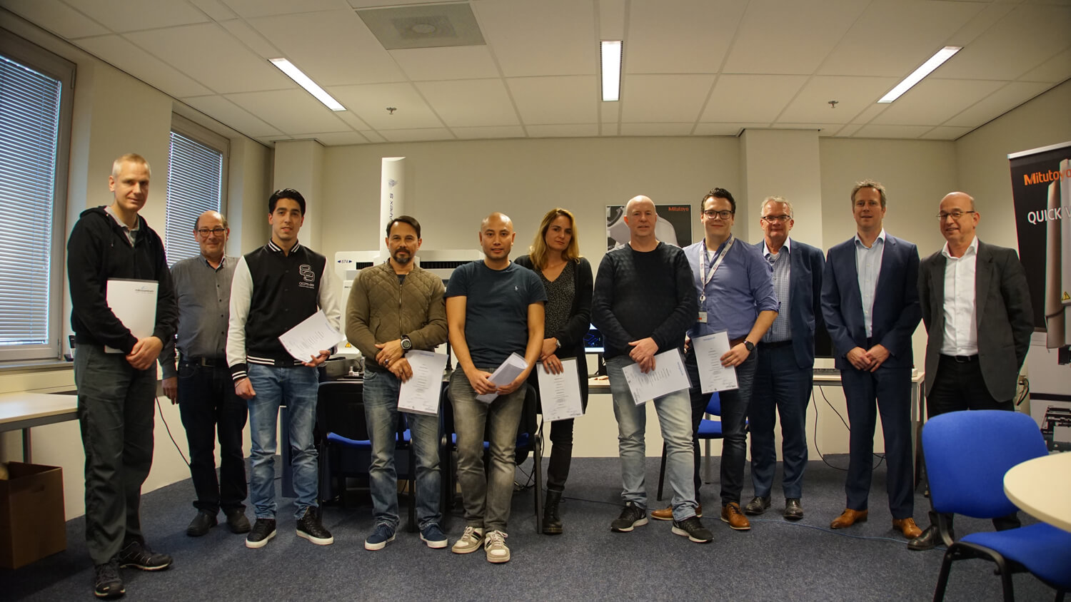 Na een drie maanden durend intensief traject mochten op maandag 13 november zeven medewerkers van VDL Enabling Technologies Group (ETG) hun getuigschriften in ontvangst nemen. Een bijzondere gelegenheid, omdat zij in een korte tijd zich hebben ontwikkeld tot meettechnicus. Dit is normaal een loopbaantraject van meerdere jaren.