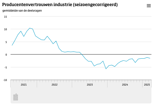 Producenten in de industrie waren desondanks iets negatiever in maart. Het vertrouwen ging van -1,2 in februari naar -1,5 in maart, aldus het CBS. Dat komt doordat fabrikanten negatiever waren over de voorraden gereed product en de orderpositie. Het producentenvertrouwen lag in maart iets onder het gemiddelde van de afgelopen 20 jaar van -1,3. Het vertrouwen bereikte in oktober 2021 de hoogste waarde (10,4). In april 2020 werd de laagste waarde (-31,5) genoteerd.