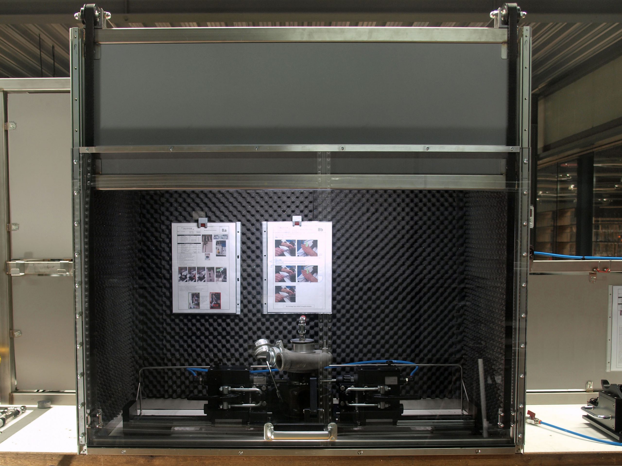 ”Ook de veiligheid en het welzijn van onze werknemers op de werkvloer is voor ons van groot belang. Een voorbeeld is gehoorbescherming: met name tijdens het assemblageproces kan het geluidsniveau flink oplopen en onze werknemers moeten op dat moment natuurlijk voldoende beschermd worden tegen gehoorbeschadiging. Zo wordt tijdens de assemblage van het turbinehuis aan het turbolagerhuis een v-band gemonteerd met hoogfrequente trilhamers. Dat maakt een enorme herrie: het geluidsniveau loopt zelfs op naar 110 dB, terwijl dit volgens de Arbowetgeving maximaal 80 dB mag zijn”, vertelt Schinkel. Het bedrijf zag drie mogelijke manieren om dit probleem op te lossen. Schinkel: “Als eerste hebben we onderzocht of we deze processtap anders konden inrichten, maar het bleek al snel een noodzakelijk onderdeel. Daarna hebben we geïnventariseerd welke hulpmiddelen we konden inzetten om het gehoor van onze werknemers te beschermen. We hebben onder meer gekeken naar professionele oorkappen. Hierbij is het probleem dat iedereen op de werkvloer zo’n oorkap op moet zetten, dus ook alle werknemers die zich met totaal andere werkzaamheden bezighouden. Dit vormde een ernstige belemmering voor de communicatie tussen onze engineers. Tot slot hebben we daarom gekeken of we dit specifieke assemblageonderdeel konden verplaatsen naar een aparte, geluidsdichte ruimte, zodat de rest van de werknemers geen geluidshinder meer ervaart.” Dit bleek de juiste oplossing voor Tachyon Engineering.