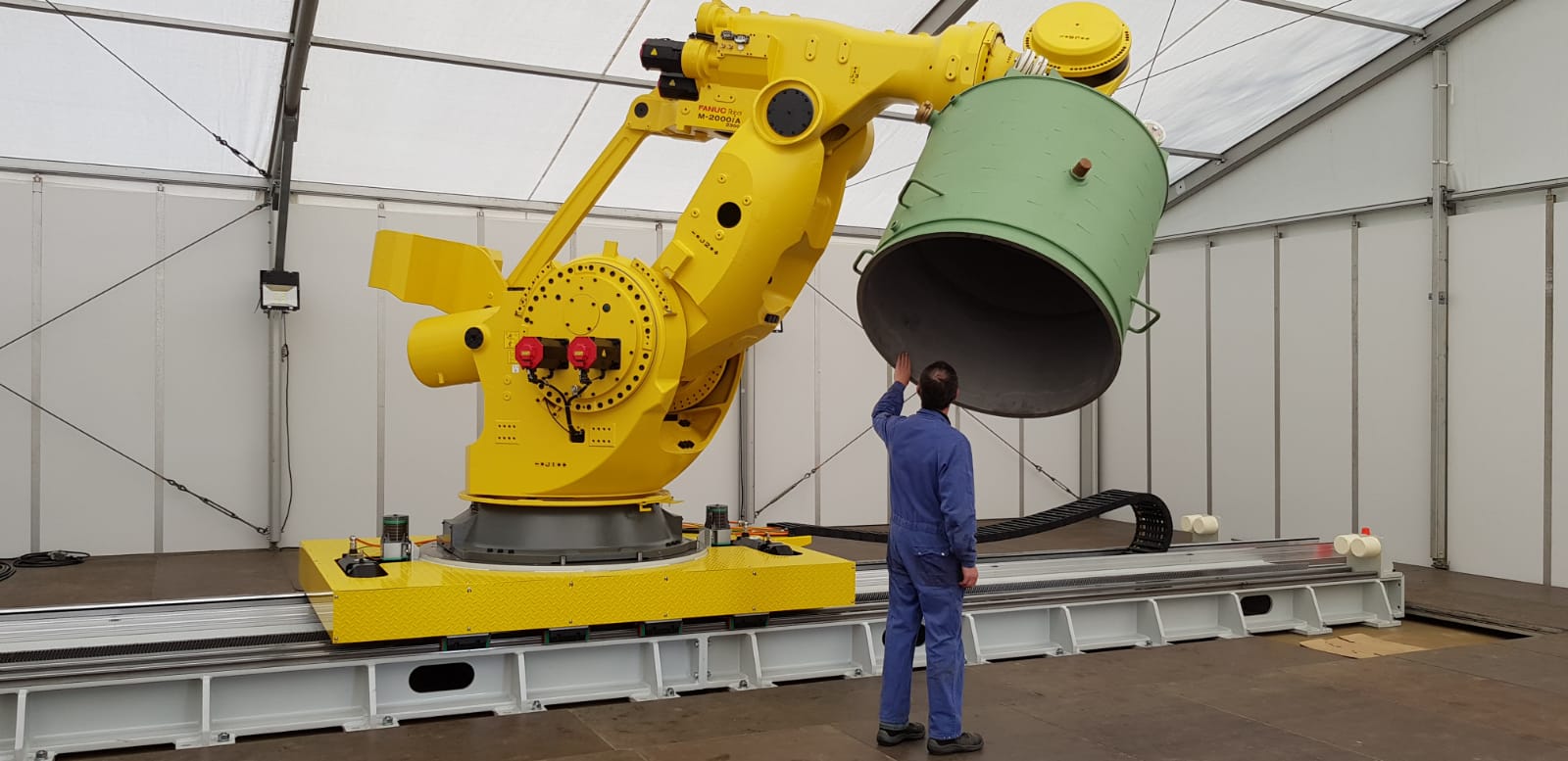 Om het bereik van de grootste Fanuc robot uit het gamma uit te breiden, ontwikkelde Vansichen Linear Technology een custom made robottrack. De Fanuc robot, de M-2000iA/2300 om precies te zijn, heeft met zijn zes assen een bereik van 3.734 mm. Door die robot op een zevende as (de track) te plaatsen, vergroot de reikwijdte immens. Op dit moment staat er een demo-model tentoongesteld bij Pollers in Heusden-Zolder (B).