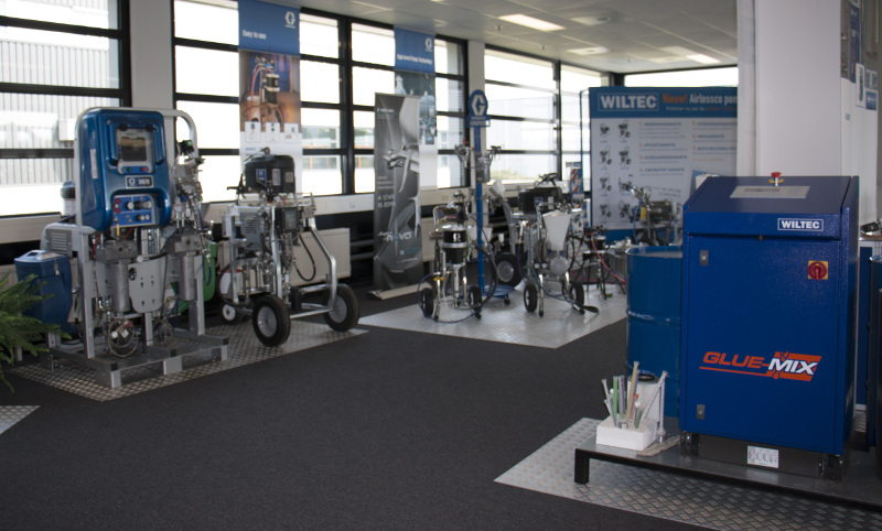 Van de complete serie Graco 2-komponenten apparatuur tot de nieuwste elektrische airless pompen, en van lijm- en kitdoseerapparatuur tot pneumatische airmix pompen; het is allemaal te zien in de vernieuwde showroom van Wiltec aan de Industrielaan 24 in Uden. Verder worden hier ook diverse afvoer- en toevoermogelijkheden gepresenteerd.