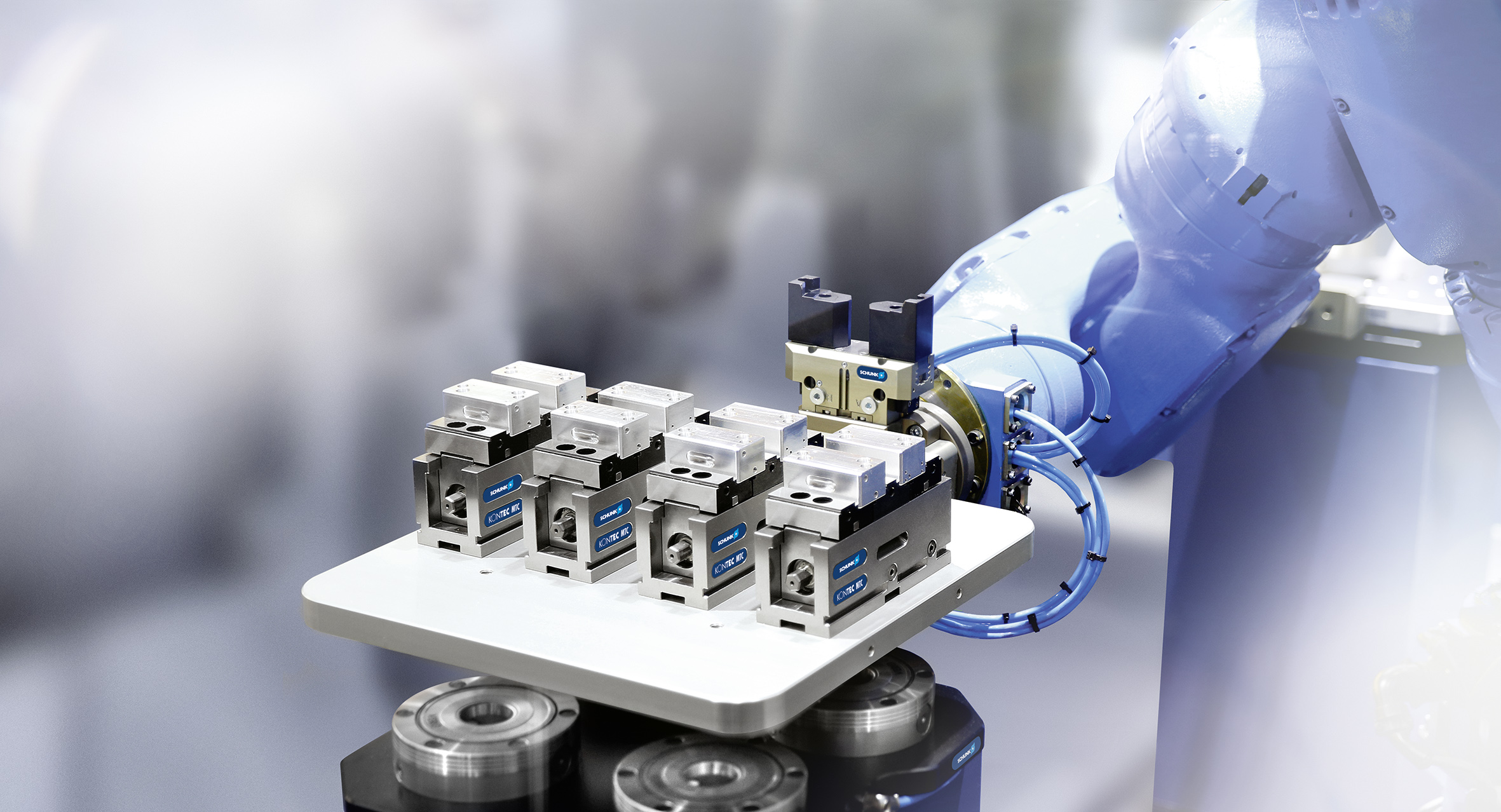 Bij de productie van kleine aantallen en losse werkstukken is het mogelijk om met behulp van automatisering stilstandtijden als gevolg van omstellen te verkorten en de machines de klok rond te gebruiken met een minimum aan personeel. Een slimme keuze van spanmiddelen en grijpsystemen is daarbij van essentieel belang. Schunk heeft met de VERO-S NSA plus een spanmiddel in huis om een geautomatiseerde werkstukwissel mogelijk te maken.