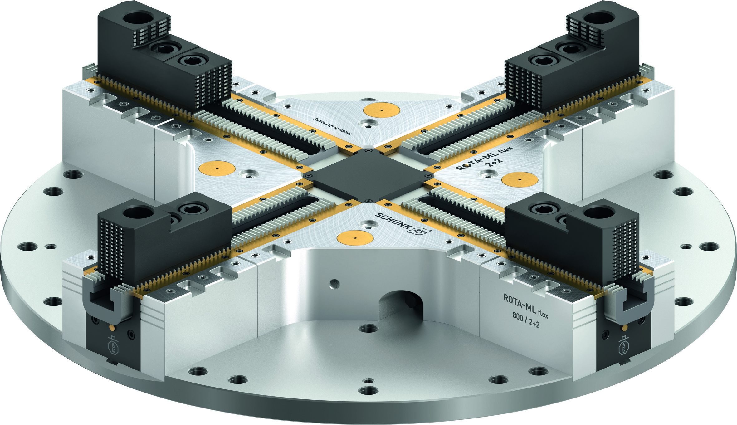 De handbediende klauwplaat Rota-ML flex 2+2 met 4 klauwen van Schunk heeft een grondige facelift ondergaan. Het resultaat: hij is nu platter, lichter – en nog flexibeler. Met de centrisch compenserende Rota-ML flex 2+2 heeft Schunk sinds 2020 een onderhoudsarme handbediende klauwplaat in het programma, waarmee bijna alle werkstukgeometrieën – rond, kubusvormig of geometrisch ongevormd – op frees- en draaimachines precies en efficiënt kunnen worden opgespannen. Het gepatenteerde aandrijfconcept heeft een bijzonder grote compensatieslag van 12 mm per klauw. Met de revisie heeft Schunk de handbediende klauwplaat opnieuw aanzienlijk verbeterd.