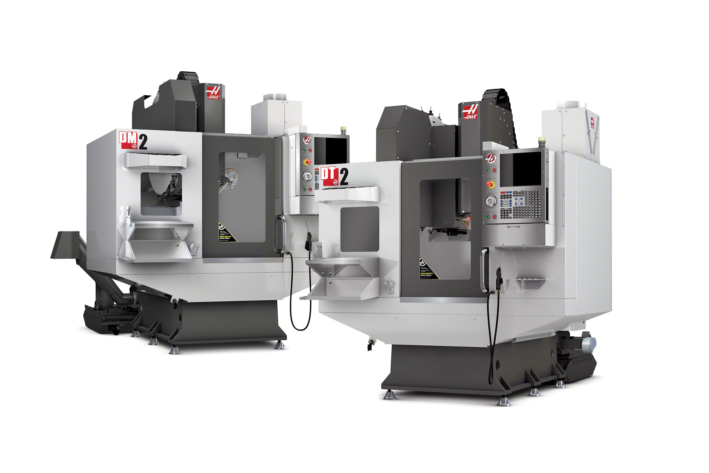 Haas heeft zijn portfolio van succesvolle boortapfreesproducten nu uitgebreid met twee nieuwe aanwinsten: de DT-2 en DM-2. Deze snelle bewerkingscentra bieden dezelfde hoge acceleratiesnelheden, snelle astoerentallen en korte gereedschapswisseltijden als de bestaande zustermodellen. Belangrijk verschil is dat ze 203 mm extra verplaatsing over de X-as bieden plus een langer machinebed, hoewel ze slechts een lichtjes groter vloeroppervlak hebben.