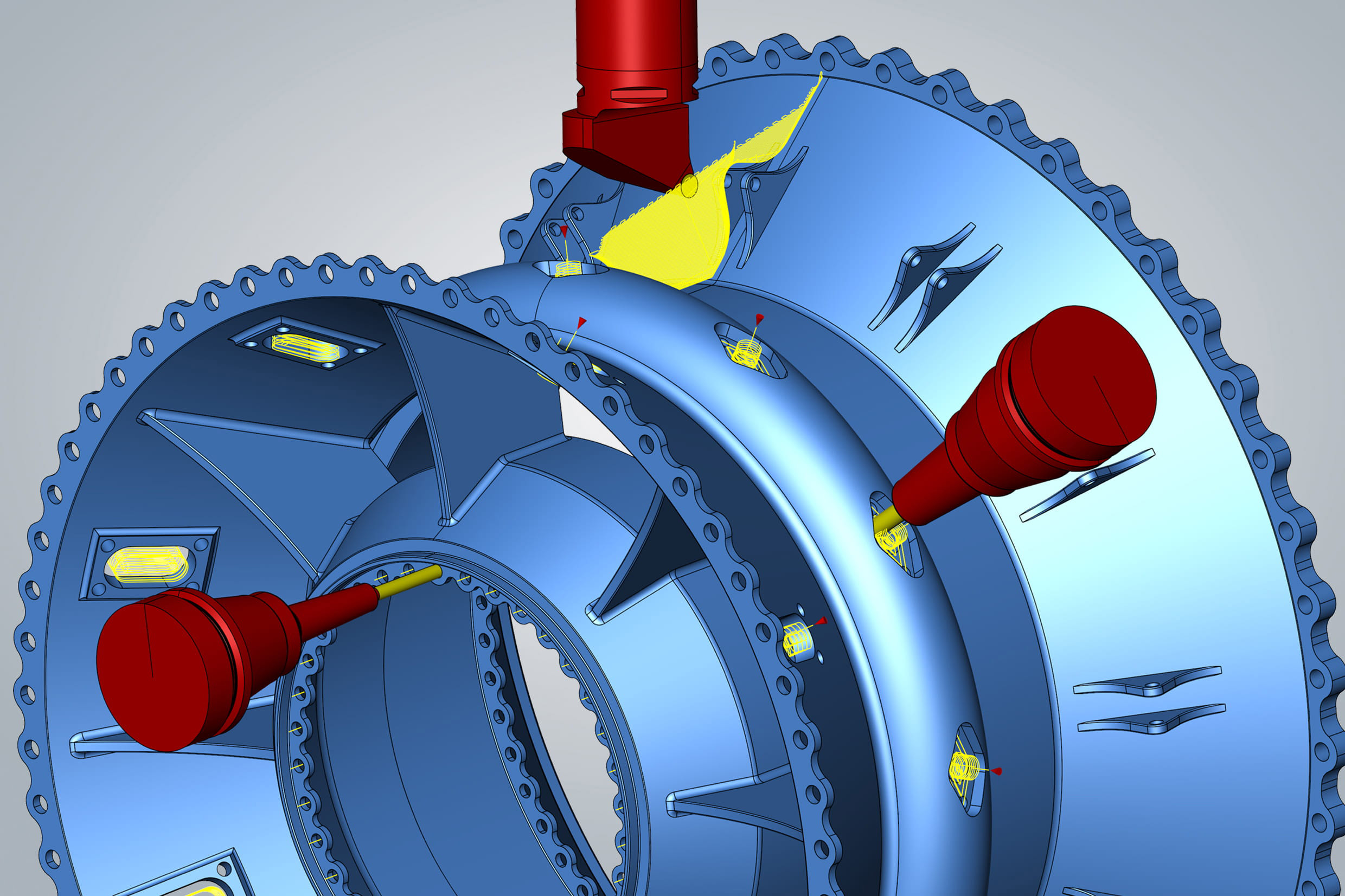 Het voordeel van 3-assig simultaan draaien blijkt ook uit de ondersnijdingen bij het bewerken van de binnencontour. Zonder deze techniek zouden deze gebieden moeilijk te produceren zijn. Bezoekers van de beurs kunnen zien hoe eenvoudig het is om 3-assig simultaandraaien te programmeren. Voor nog betere prestaties kan simultaan voordraaien ook worden gebruikt met de HPC optie.