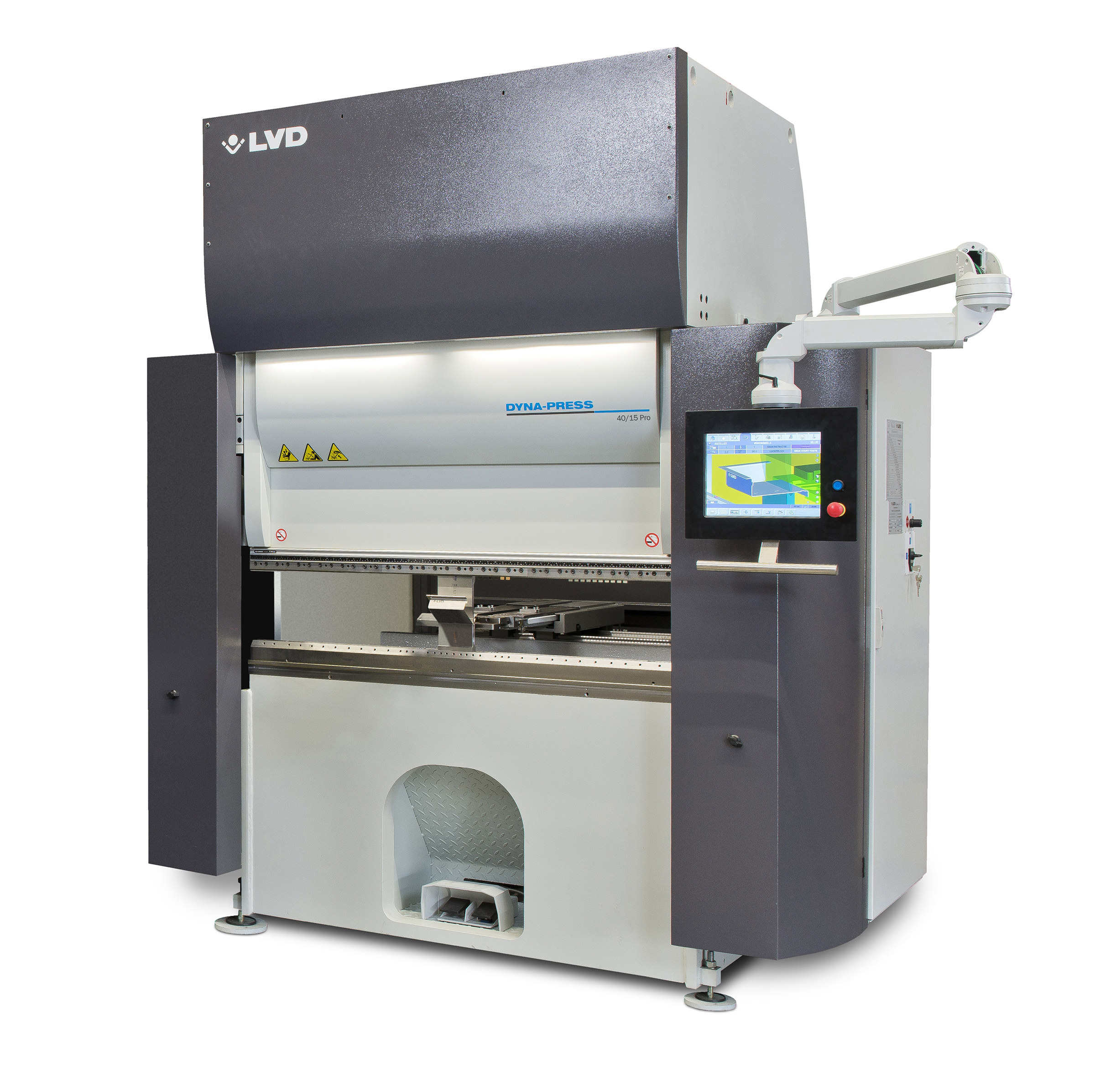 Dyna-Press 40/15 Pro is met minimale training eenvoudig te bedienen. De 15” Touch-B touchscreensturing heeft een intuïtief grafisch scherm en laat de operator bovendien toe om 2D-tekeningen te maken en in 3D te simuleren. De sturing is compatibel met LVD’s CAM-software, Cadman-B.