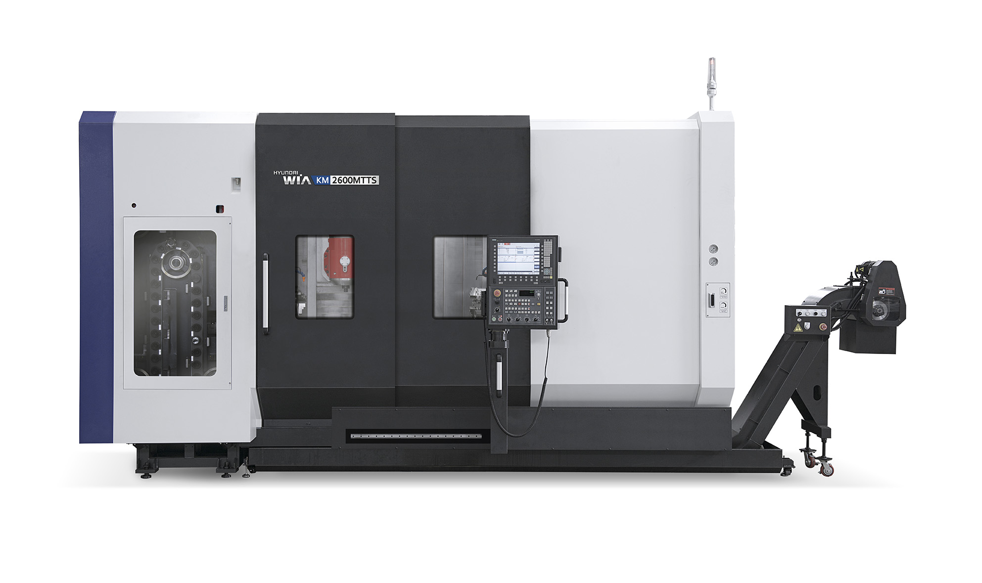 De nieuwe KM2600MTTS is uitgerust met een universele freeskop, turret en subspindel. Hierdoor is een volwaardige combinatie mogelijk van frees- en draaibewerkingen in een en dezelfde opspanning. De KM2600MTTS kent een stafdoorlaat van 80 mm; de maximale draaidiameter bedraagt 750 mm, de maximale draailengte 1.550 mm. Het maximale toerental van de hoofdspil (met built-in motor) bedraagt 4.000 min-1. De freeskop (met direct drive motor) heeft een kantelbereik (B-as) van 240º (- 30º tot +210º) en het maximaal toerental van de gereedschappen ligt op 12.000 min-1. De turret telt twaalf posities, met een toerental tot 6.000 min-1 voor de aangedreven gereedschappen. Daarnaast is de machine uitgerust met een kettingmagazijn met 36 posities (optioneel 72) voor freesgereedschappen. Bij de KM2600MTTS wordt gebruik gemaakt van een Sinumerik 840D besturing van Siemens.