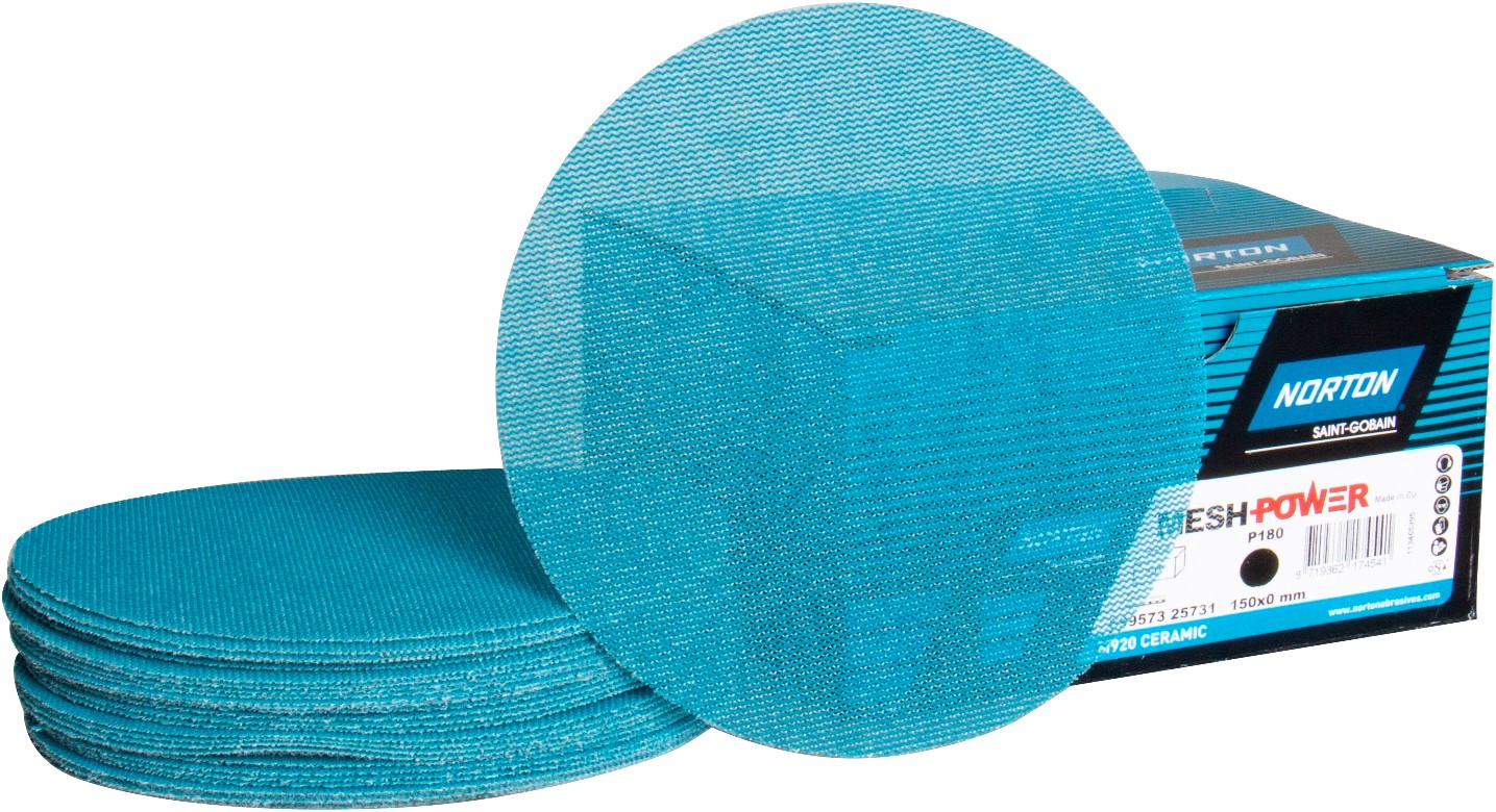 De Norton Mesh Power schuurmaterialen maken het mogelijk om stofvrij te schuren. Waar traditioneel schuurkorrels worden verlijmd op papieren dragers, biedt de Norton Mesh een concept wat gebaseerd is op het gebruik van een gaasconstructie. Hierdoor bevat het materiaal geen stofgaten meer, maar vindt de stofafzuiging plaats over het gehele schuuroppervlak.