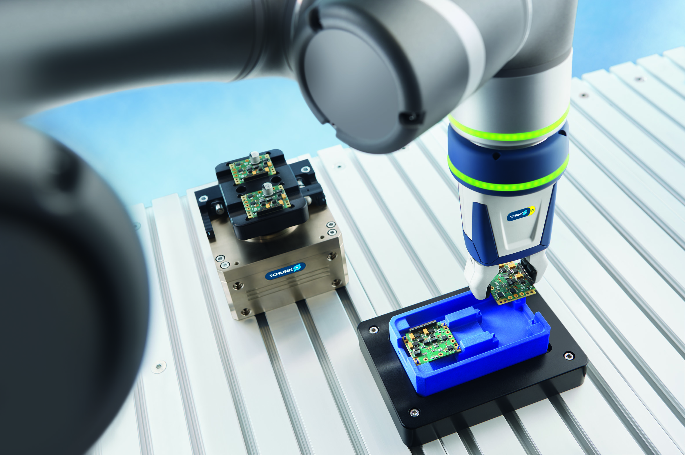 Cobots zijn licht van gewicht, flexibel in gebruik en eenvoudig te programmeren. Zij kunnen worden ingezet om repetitieve taken, zoals het laden en ontladen van een machine of assemblage, snel en kosteneffectief te automatiseren. Het is dan ook niet verwonderlijk dat ze nu een integraal onderdeel van de industriële robotica uitmaken en dat ze steeds belangrijker worden. Zelfs kleine en middelgrote bedrijven automatiseren steeds meer hun productie en logistieke activiteiten. Om het voor de gebruikers zo eenvoudig mogelijk te maken, biedt Schunk complete programma’s voor cobots en lichtgewicht robots van verschillende fabrikanten. Het Plug & Work-portfolio omvat pneumatische en elektrische grijpers, Co-act grijpmodules voor collaboratieve toepassingen en snelwisselsystemen.