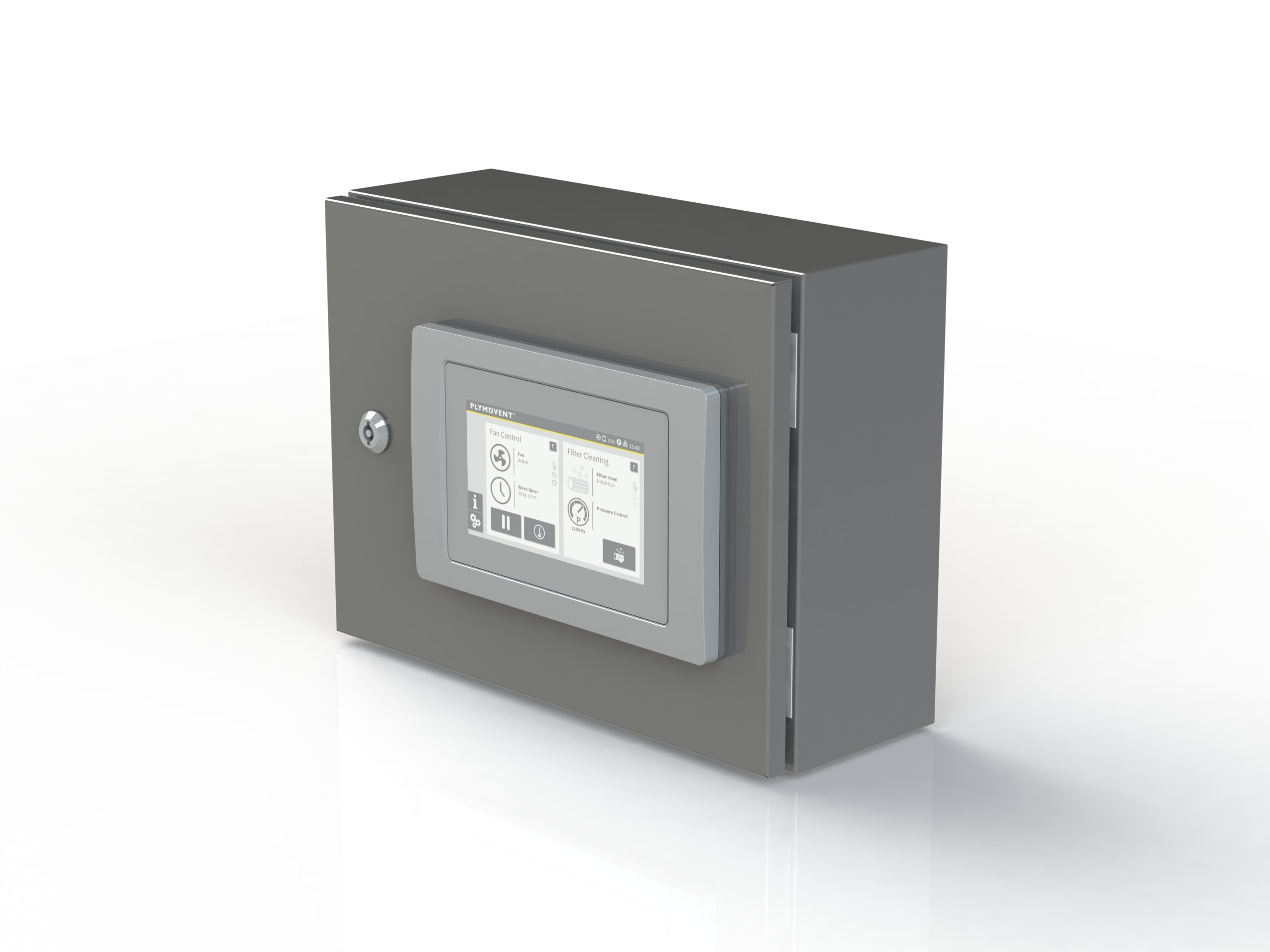 Door middel van het digitale touchscreen kan zeer eenvoudig instellingen gemaakt of gewijzigd worden. Dit gebeurt stap voor stap. Ieder systeem van Plymovent heeft dezelfde touchscreen, met eenvoudige menu structuur gebruikmakend van Intuïtieve symbolen en info-functies
