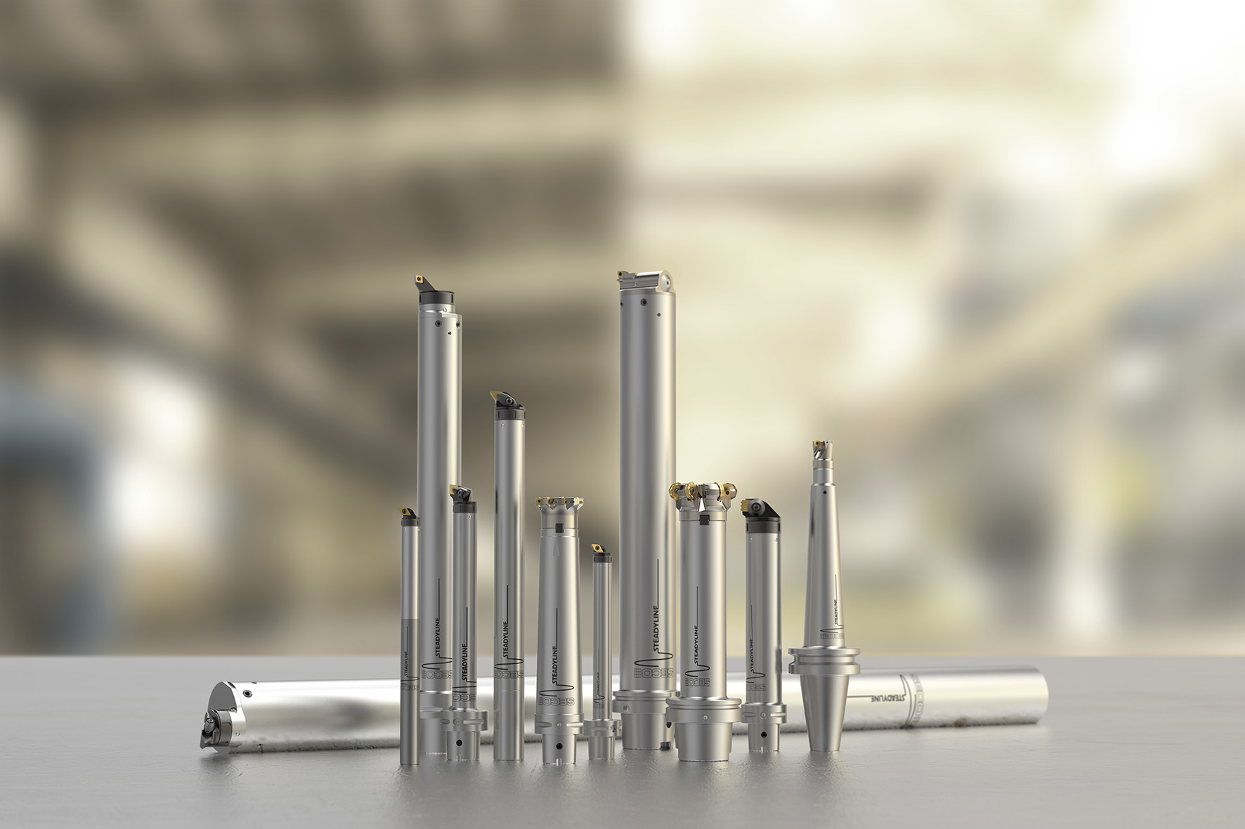 Steadyline-draaibaren maken gebruik van het meest effectieve trillingsdempingssysteem op de markt voor eenvoudig draaien en kotteren tot een diepte van maximaal 10xD op kleine en grote gaten. Het systeem met passieve/dynamische trillingsdemping gebruikt een dempende massa in de baar en korte, compacte koppen om de trillingen optimaal te absorberen. Hierdoor wordt het mogelijk om gereedschapslengtes tot tien maal de baardiameter te gebruiken zonder overslaand gereedschap of werkonderbrekingen.