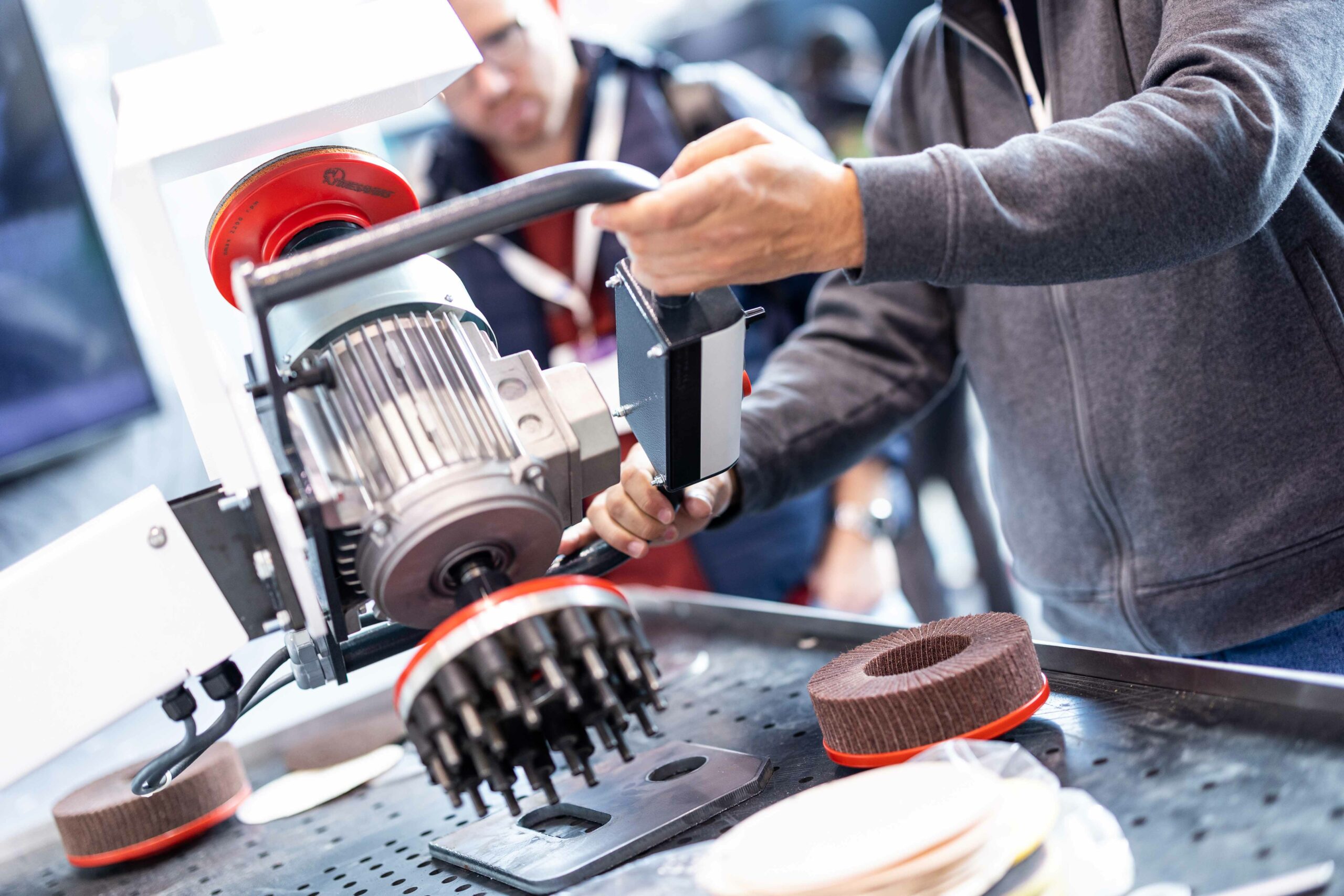 De nieuwste machine wordt ook gepresenteerd: de 12 RB series. Dit is de kleinste machine met de RB-techniek van Timesavers. Met een schuurband, één grote borstel en een finishband bewerkt de machine kleine onderdelen tot een maximale breedte van 300 mm. Het kan een perfecte aanvulling zijn op een grotere ontbraammachine of als instapmodel gebruikt worden.