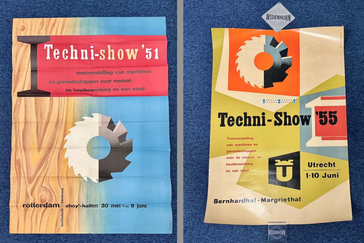 De twee op de kop getikte klassieke posters zal Widenhorn zeker presenteren op zijn stand van dit jaar. Een deel van die stand is ingericht om de geschiedenis van TechniShow te laten zien, wat ook past bij de historie van Widenhorn. Zo is er het pasje van zijn opa, van die eerste editie. Maar in nostalgie kan je niet wonen, weet ook hij. “Op een beurs als TechniShow ontmoet je mensen die je nog niet kent. Zeker op TechniShow, wat altijd een bedrijfsuitje was voor iedereen. Ook van de werkvloer. Maar het is niet alleen nostalgie. Het blijft het grootste platform om iets te bereiken.”