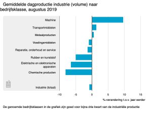 De gemiddelde dagproductie van de Nederlandse industrie was in augustus 0,8 procent lager dan in augustus 2018, maakt het CBS …